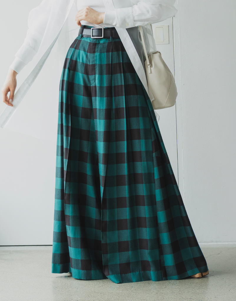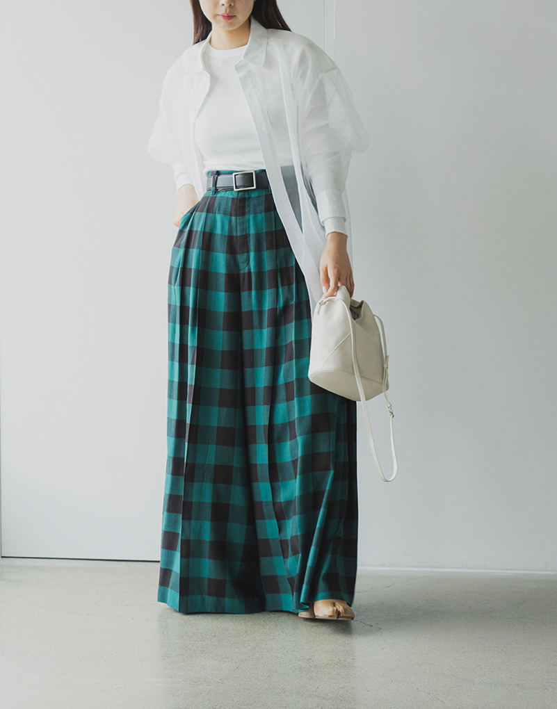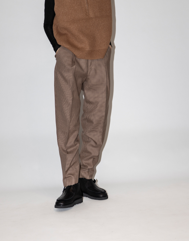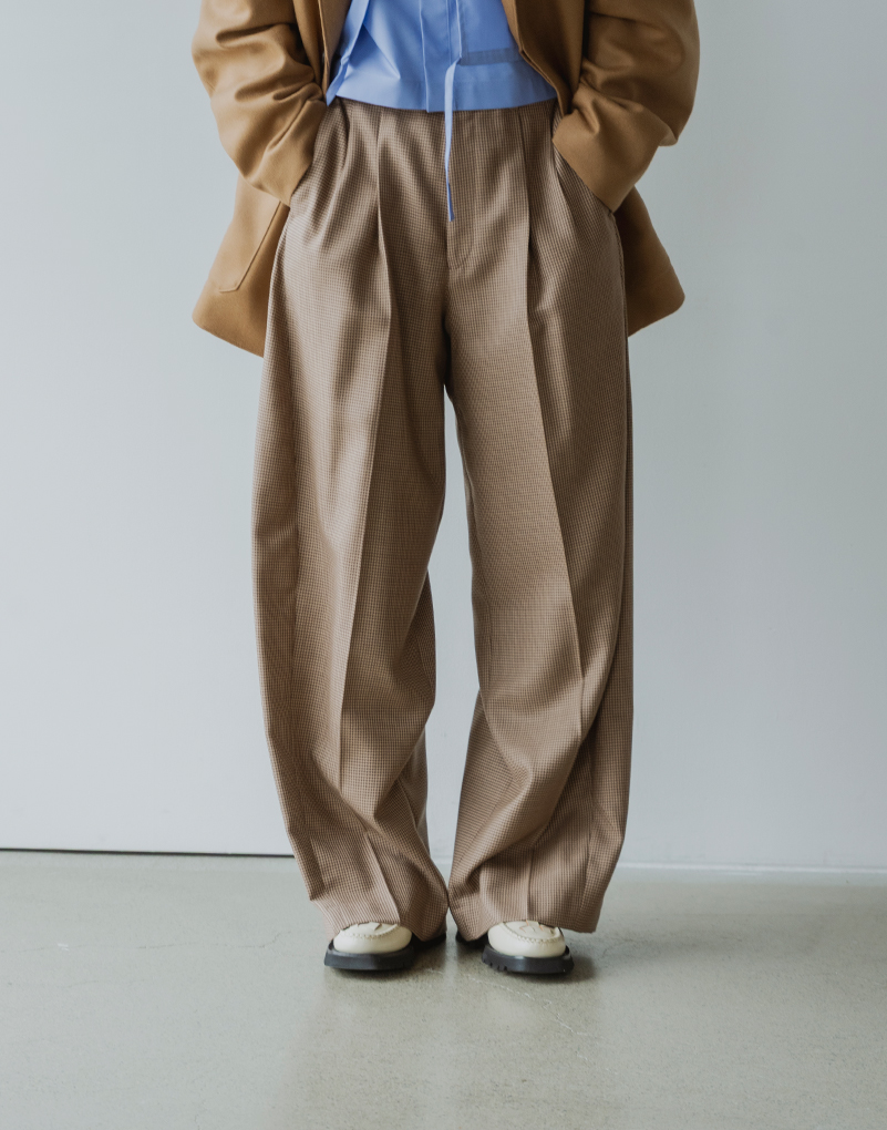バレルシルエットでも展開している千鳥格子柄にはテーパード型も。
