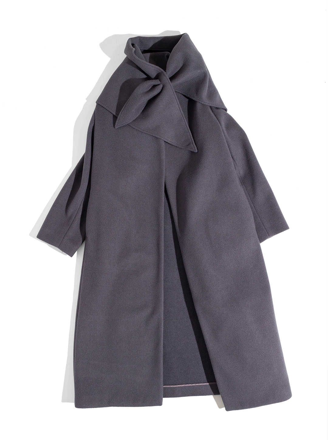 スカーフを外すとエレガントなノーカラーコートになるのでスタイリングの幅も広がって高得点です。
