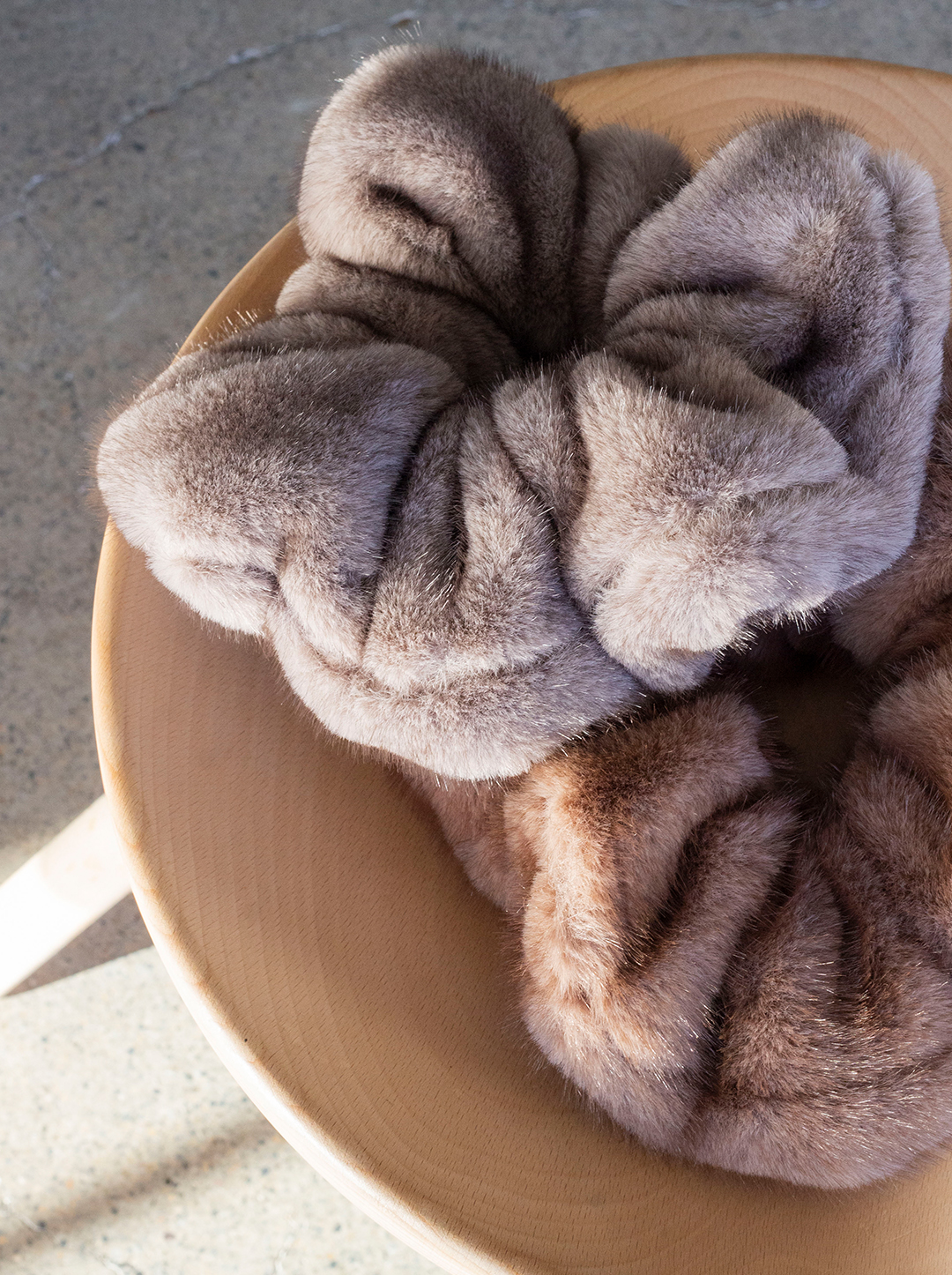 ふんわりとしたフェイクミンク素材を使用したシュシュはこの冬の一軍ヘアアイテムとしておすすめのアイテム。