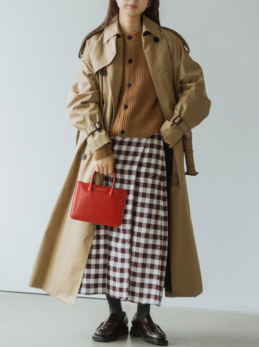 ボタンがないからこそ、どこからみてもシルエットが綺麗なのも◎