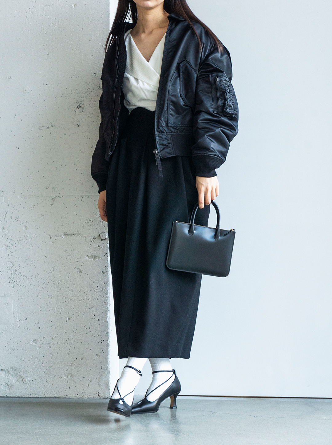 上質な区レザーを使用しているため、洗練さのある艷やかな素材感が着こなしを引き締めます 。