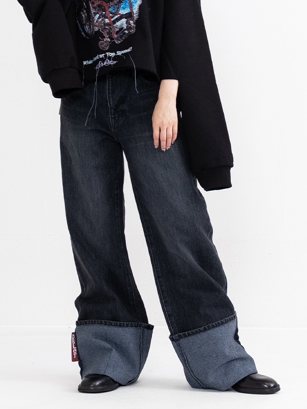 RECYCLE DENIM LOW-RISE DENIM PANTS