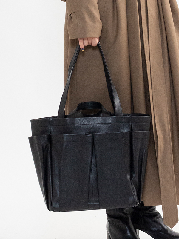 またスムースレザーコレクションからは、滑らかなレザーの表情と大きな容量で人気のダブルハンドルトートも長らく完売しておりましたが今回再入荷となります。