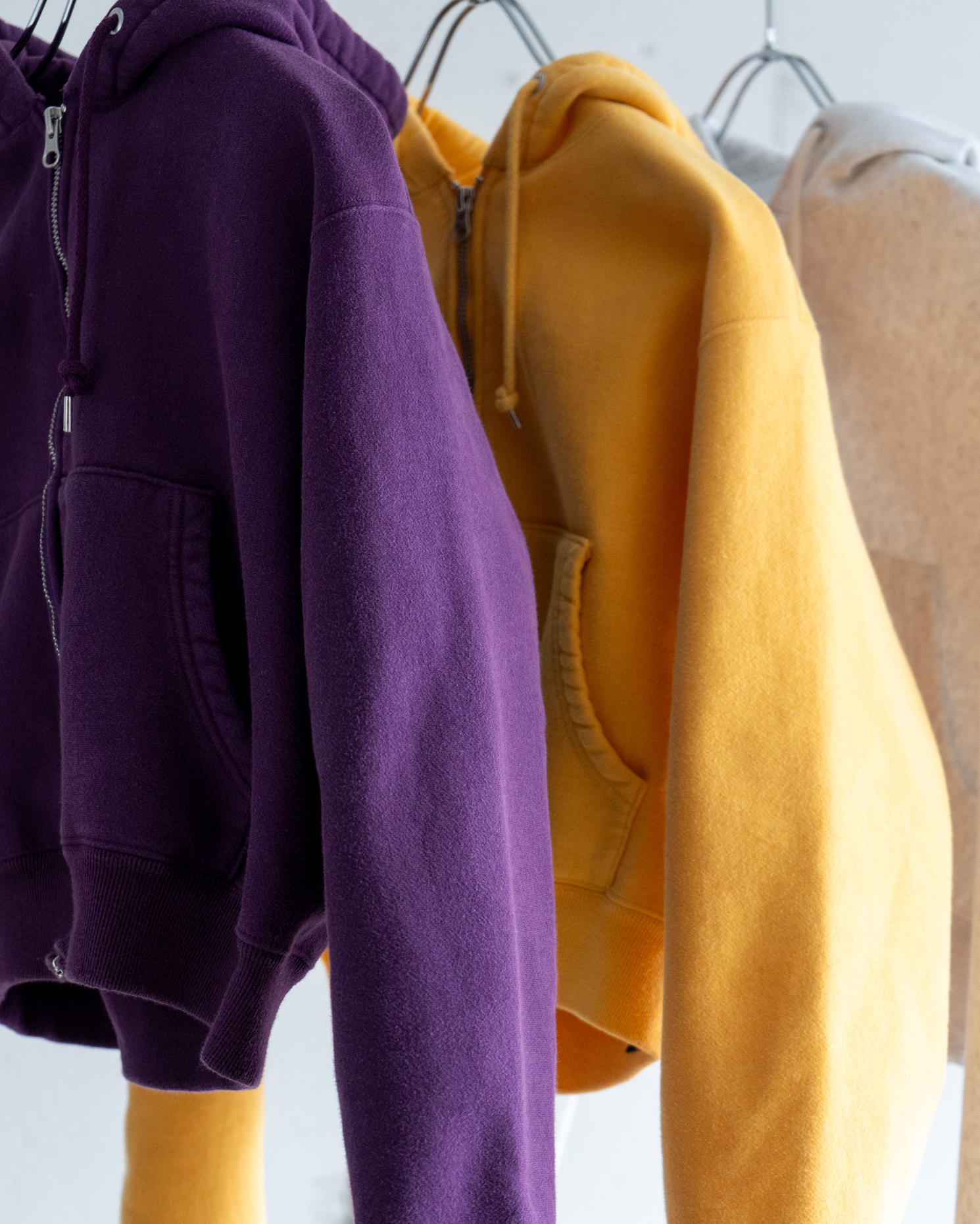 今回のデリバリーで目を引くのは、パープルやイエローなどのビビッドカラーが印象的なスウェットシリーズ。