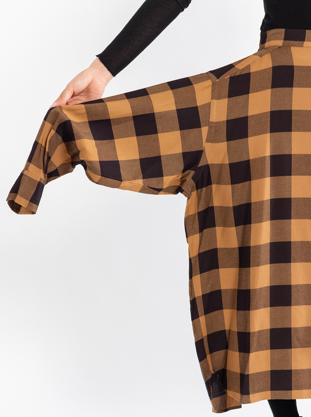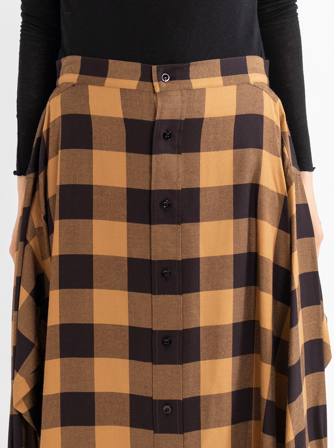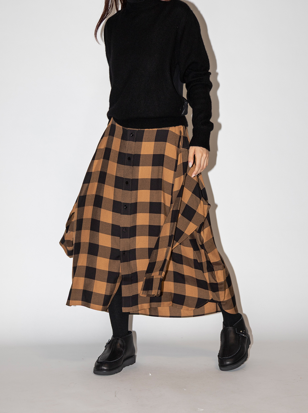 HYKEからご紹介する”RAYON PLAID SHIRT INSPIRED SKIRT”は名前の通りシャツからインスパイアされたスカート。