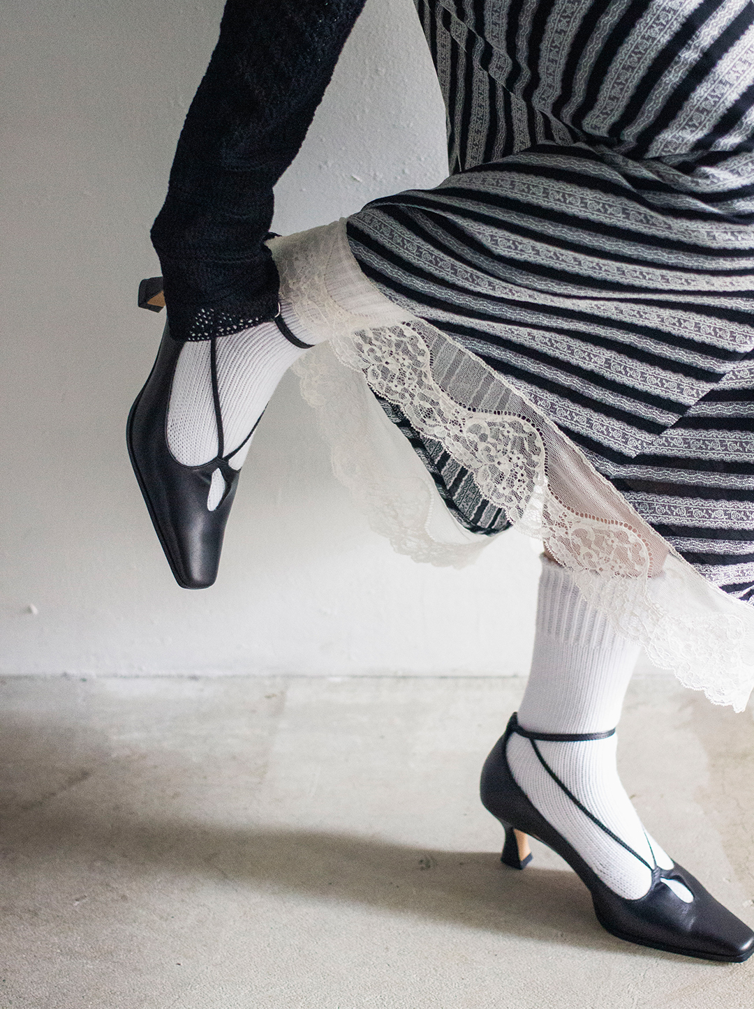 素足で履くのはもちろんFETICOのLOOKのように白ソックスと合わせるのも、おすすめですよ〜