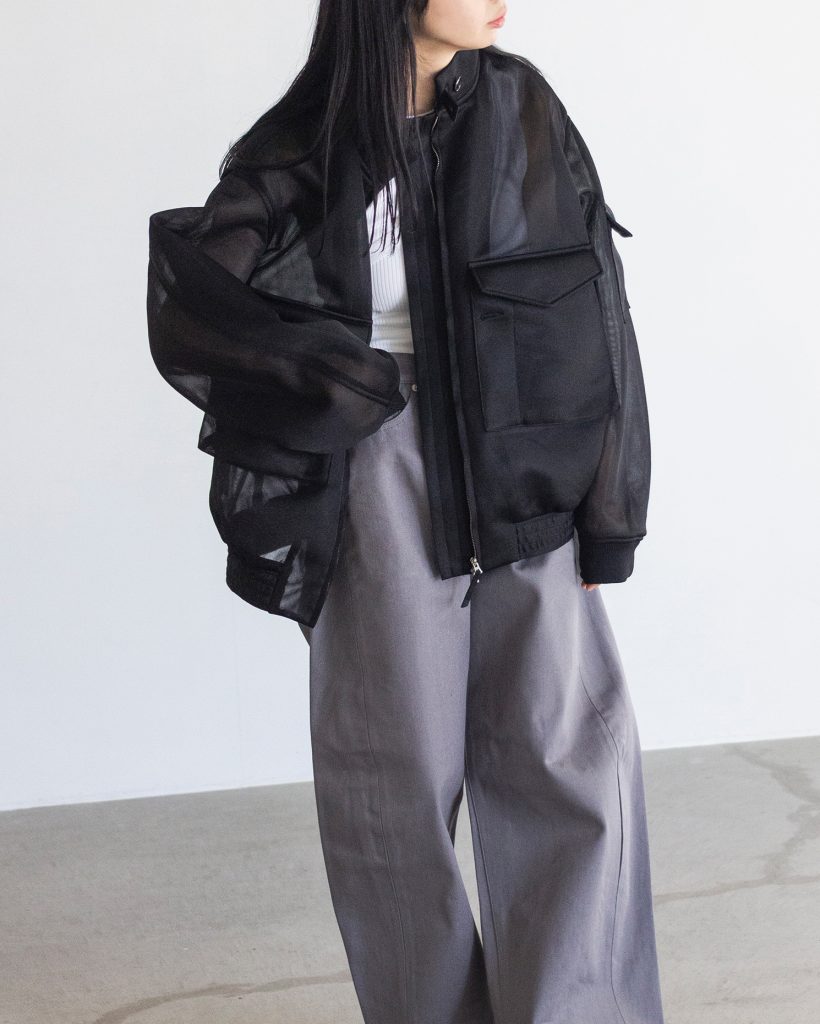 今回の入荷では、コレクションでも存在感を放っていたシアーウェップジャケットが登場。