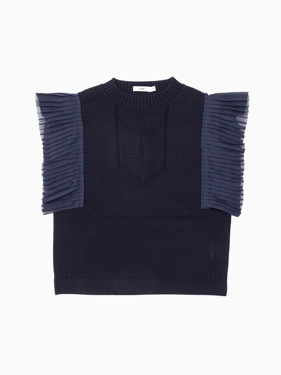 SLEEVELESS PLEATED GUERNSEY KNIT