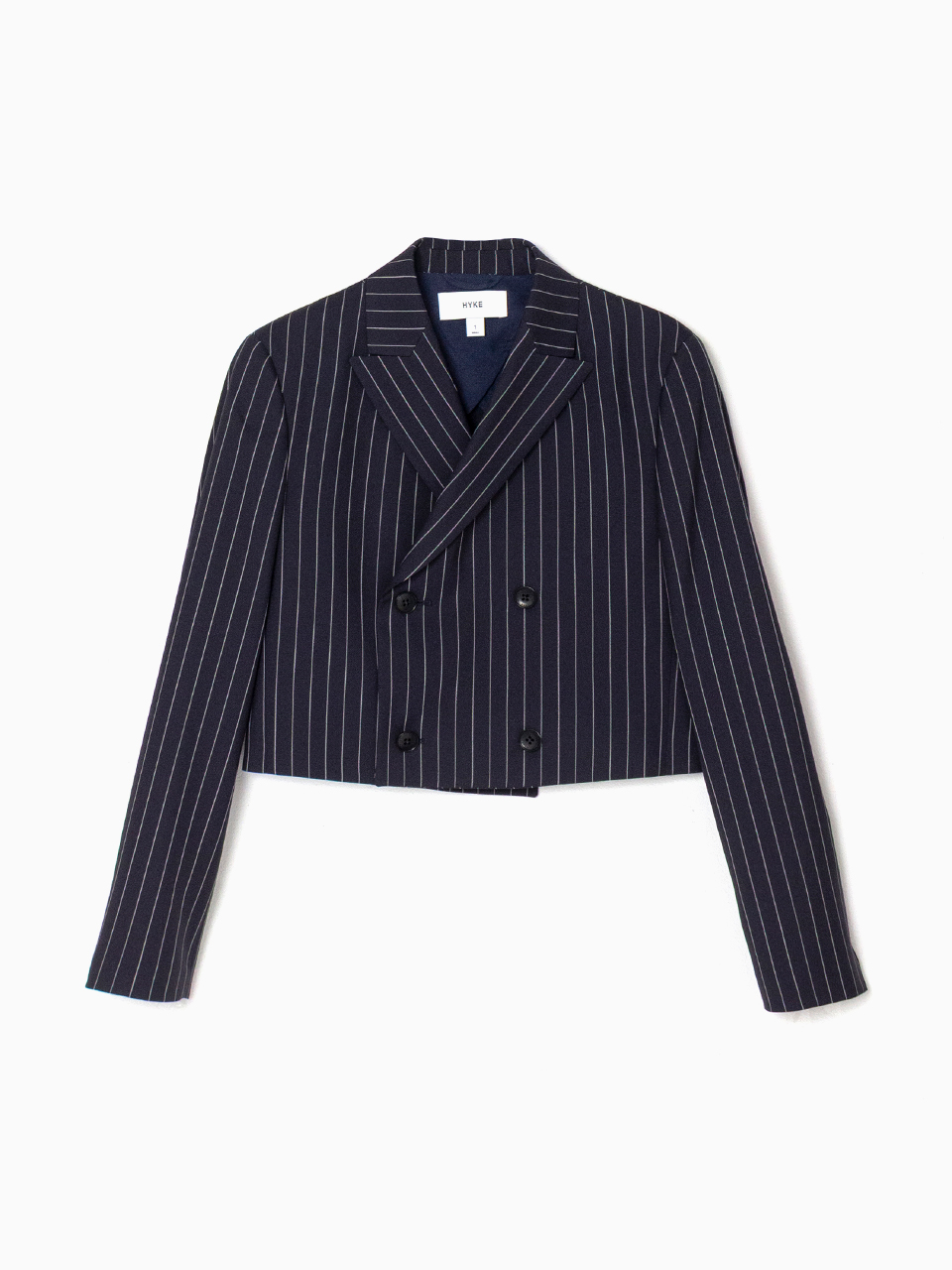 STRIPED DOUBLE BREASTED CROPPED BLAZER