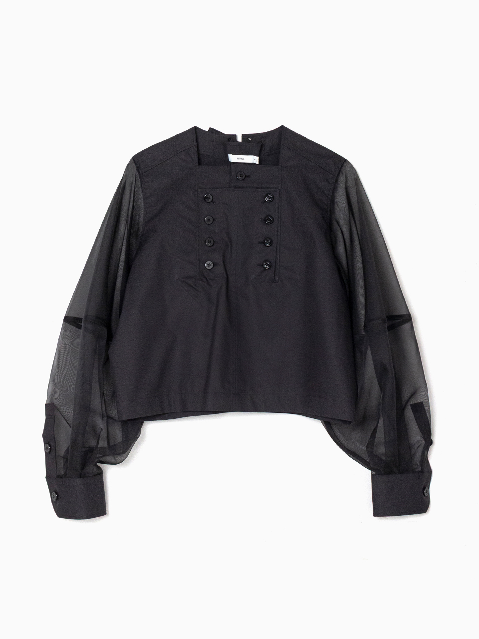 T/C SHEER SLEEVE SAILOR CROPPED BLOUSE