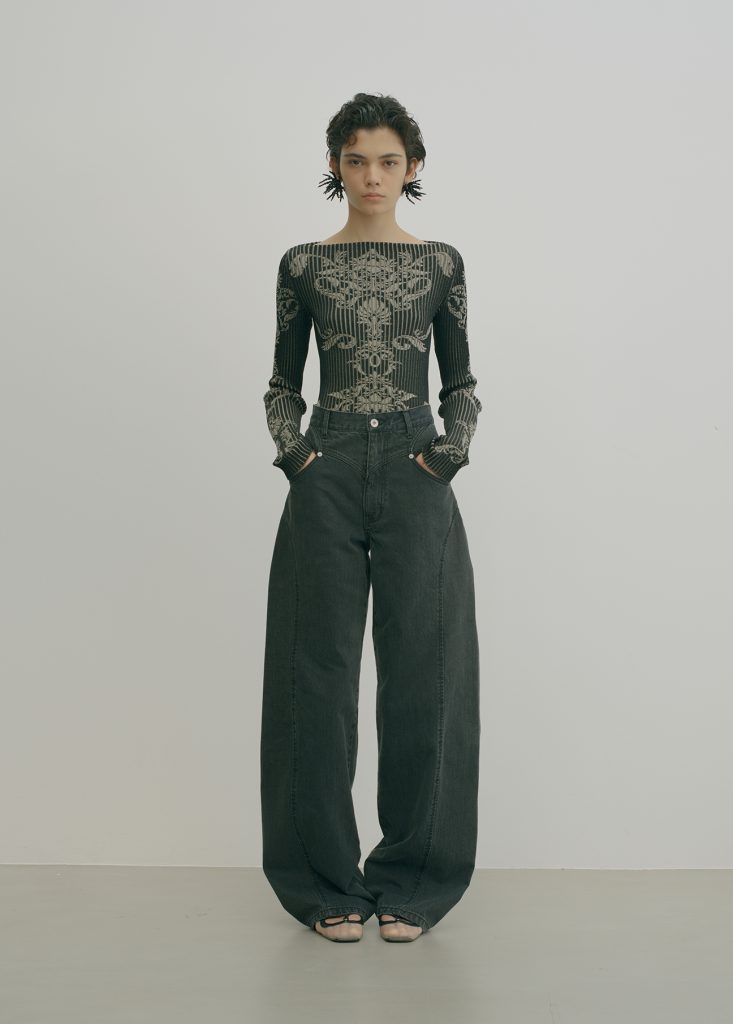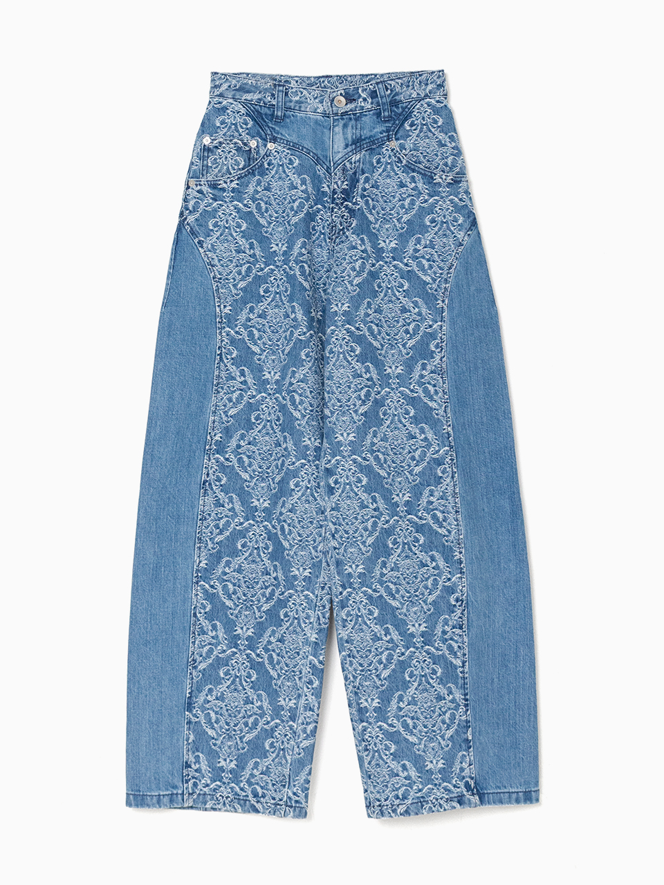 DAMASK-PRINT DENIM CURVE-FIT HIGH-RISE JEANS