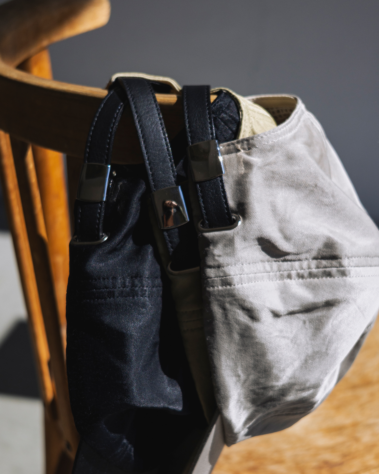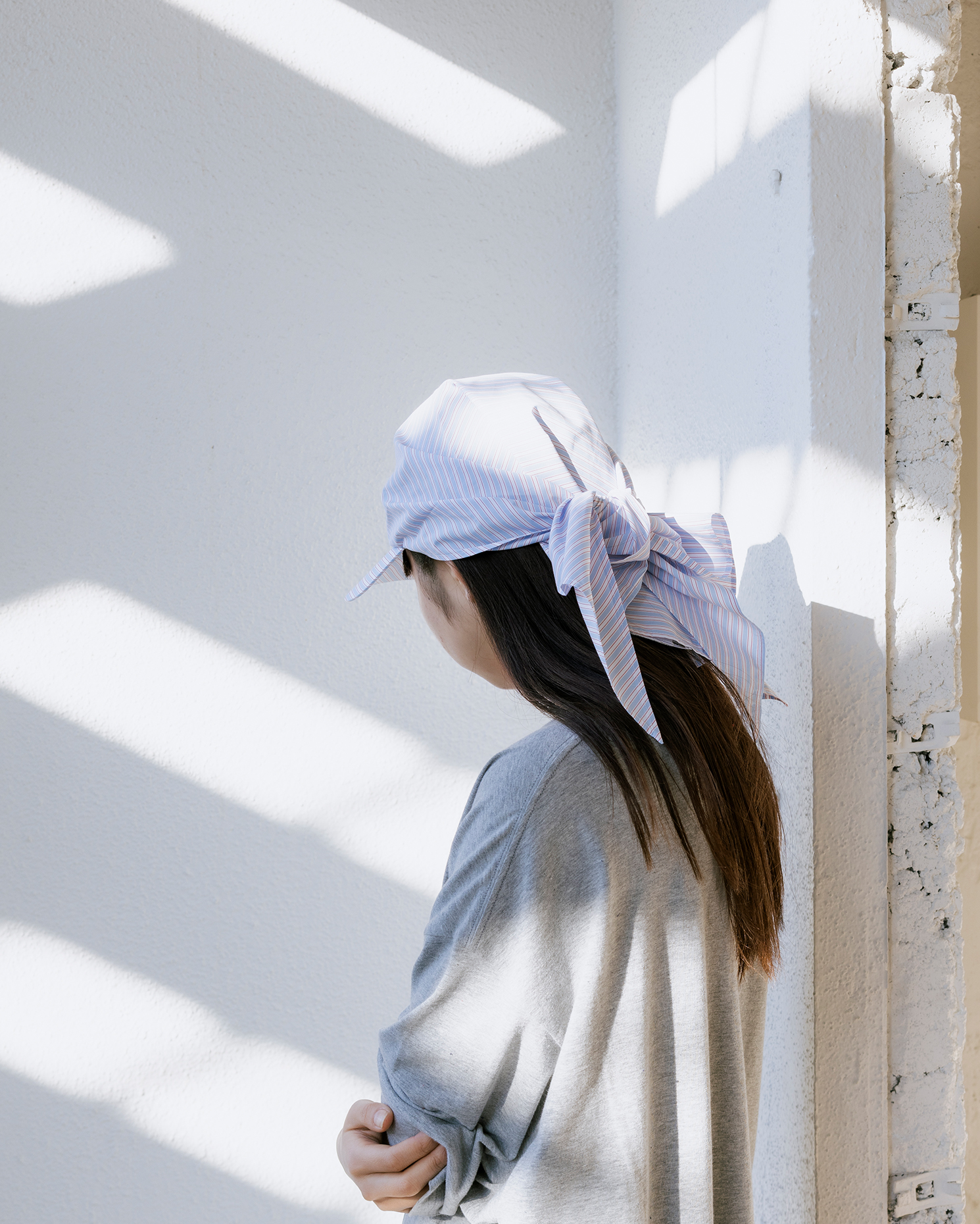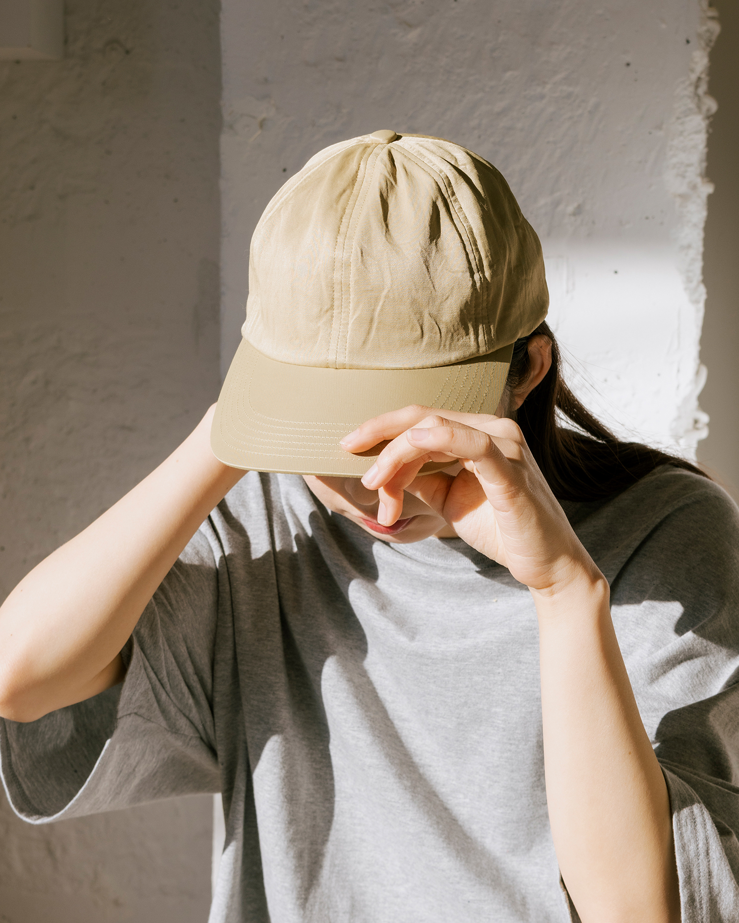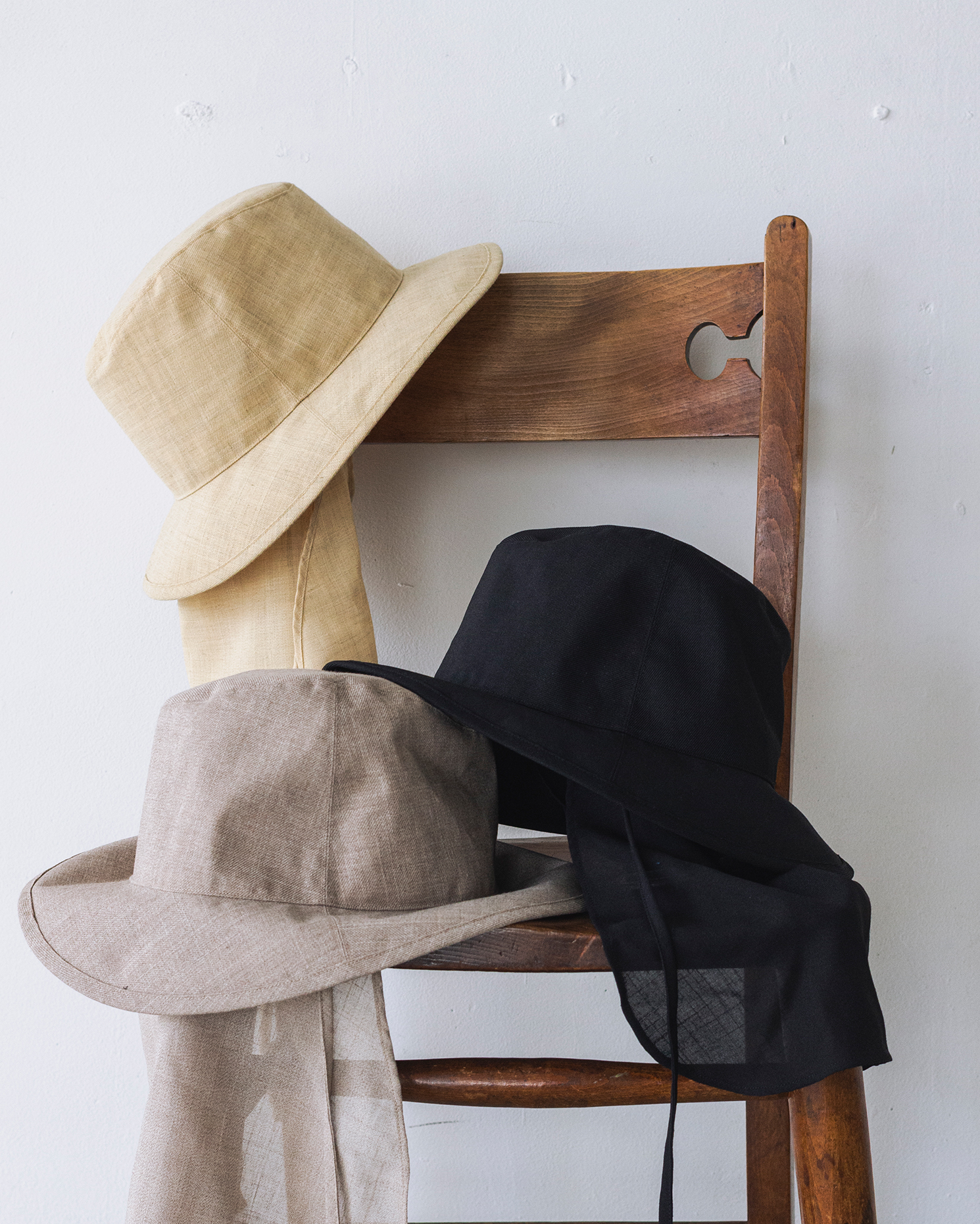 スカーフが取り外し可能な2WAY仕様のバケットハットや、スカーフをドッキングさせたキャップは、季節感のある軽やかなスタイリングに最適なアイテム。