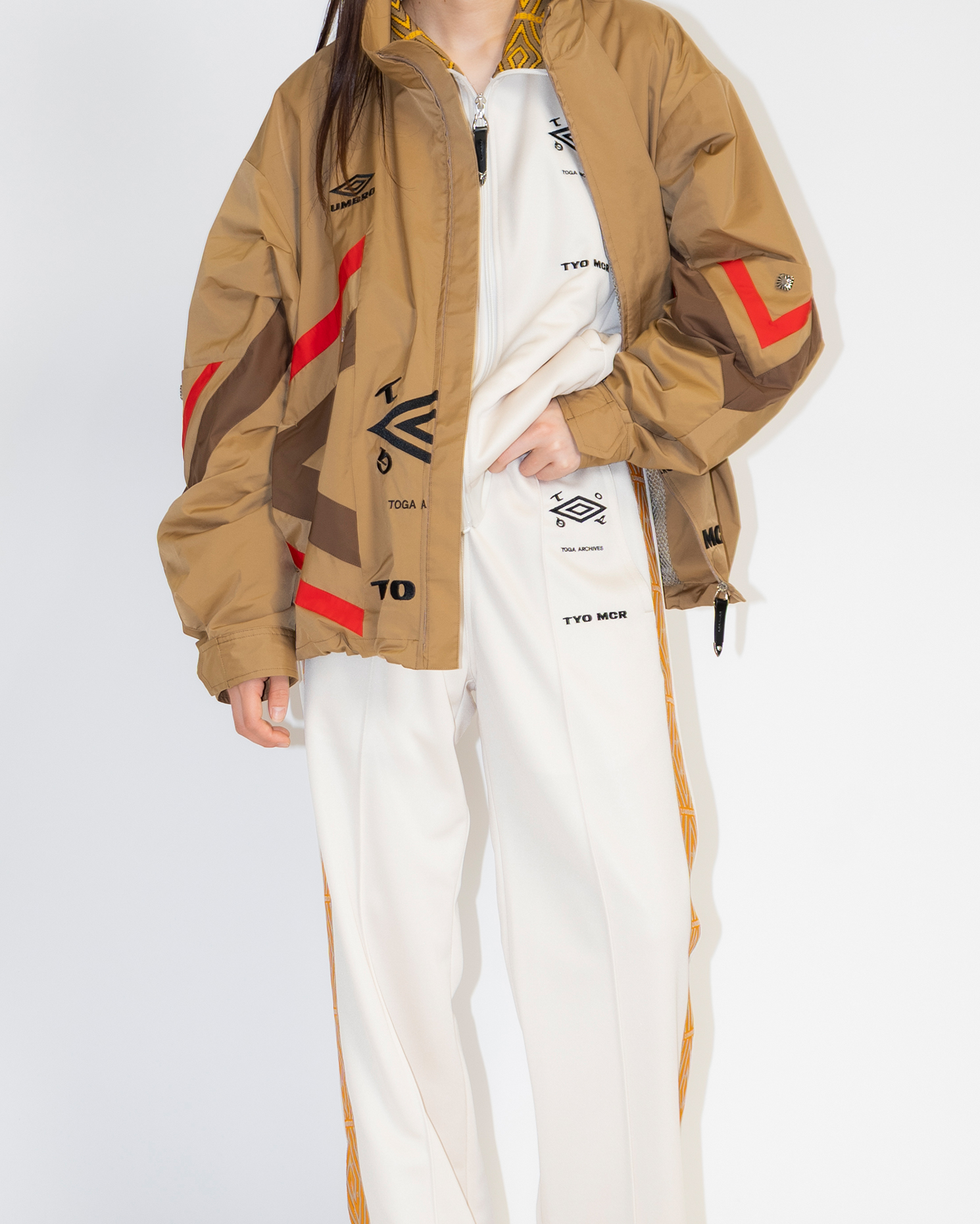 アクティブなUMBROのボディにTOGAの装飾性が加わることでカジュアルな合わせはもちろん、モードなスタイリングの「外し」としても機能する唯一無二の一着に仕上がっています。