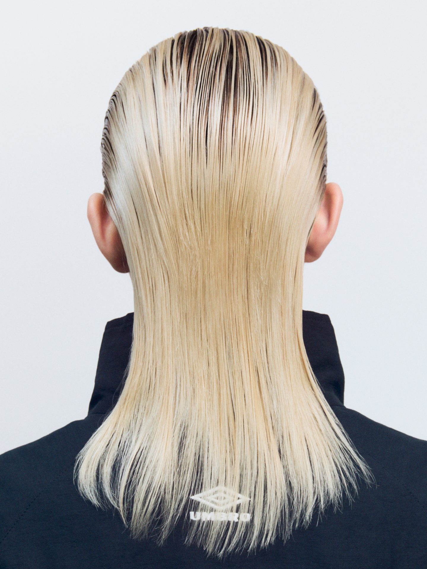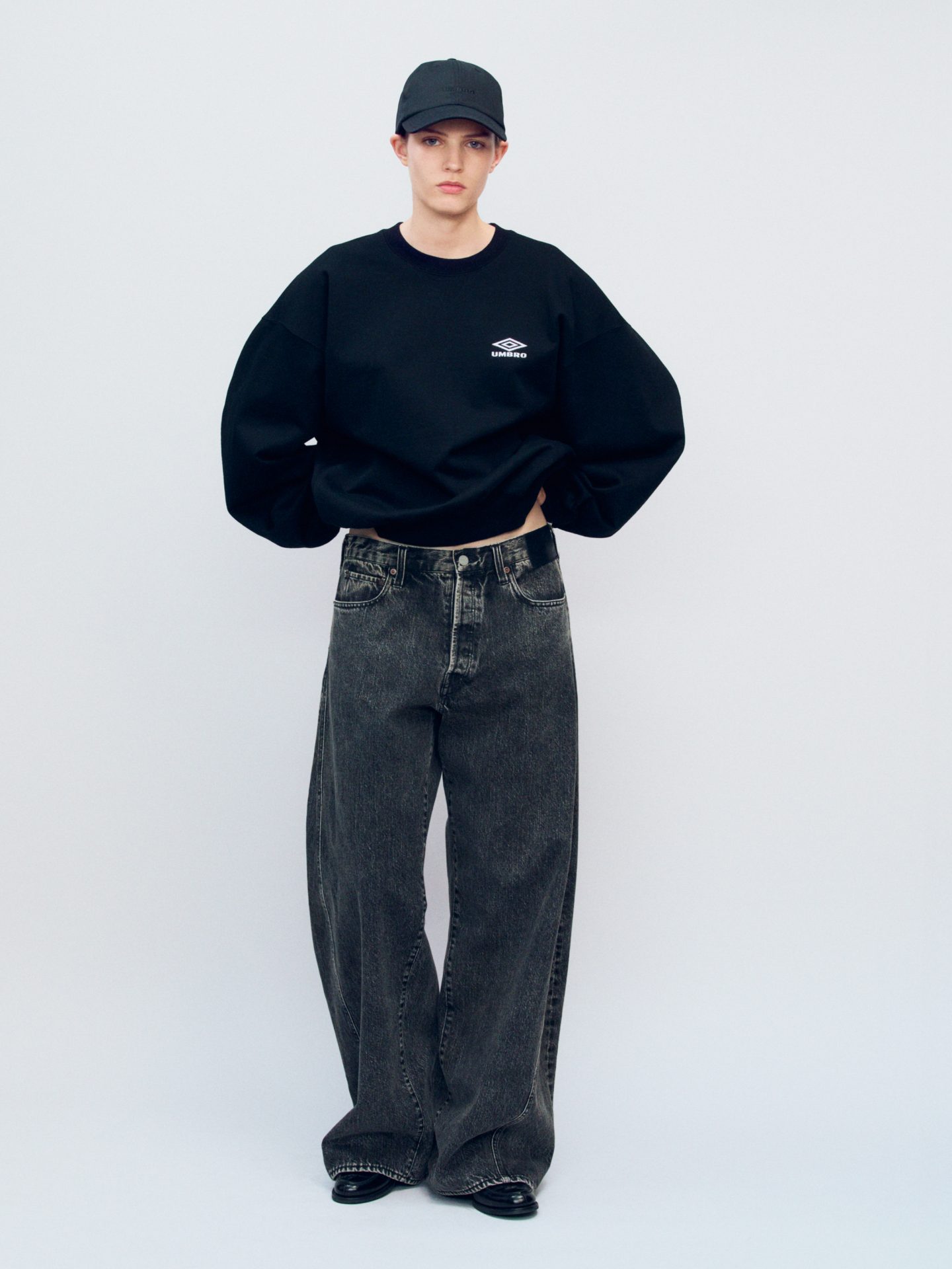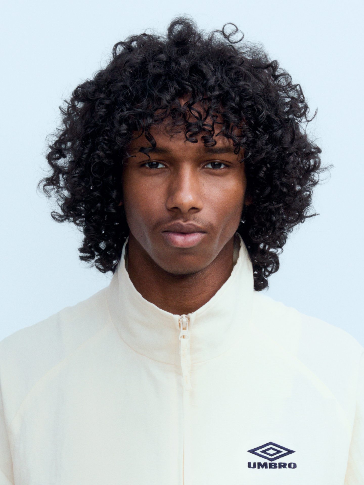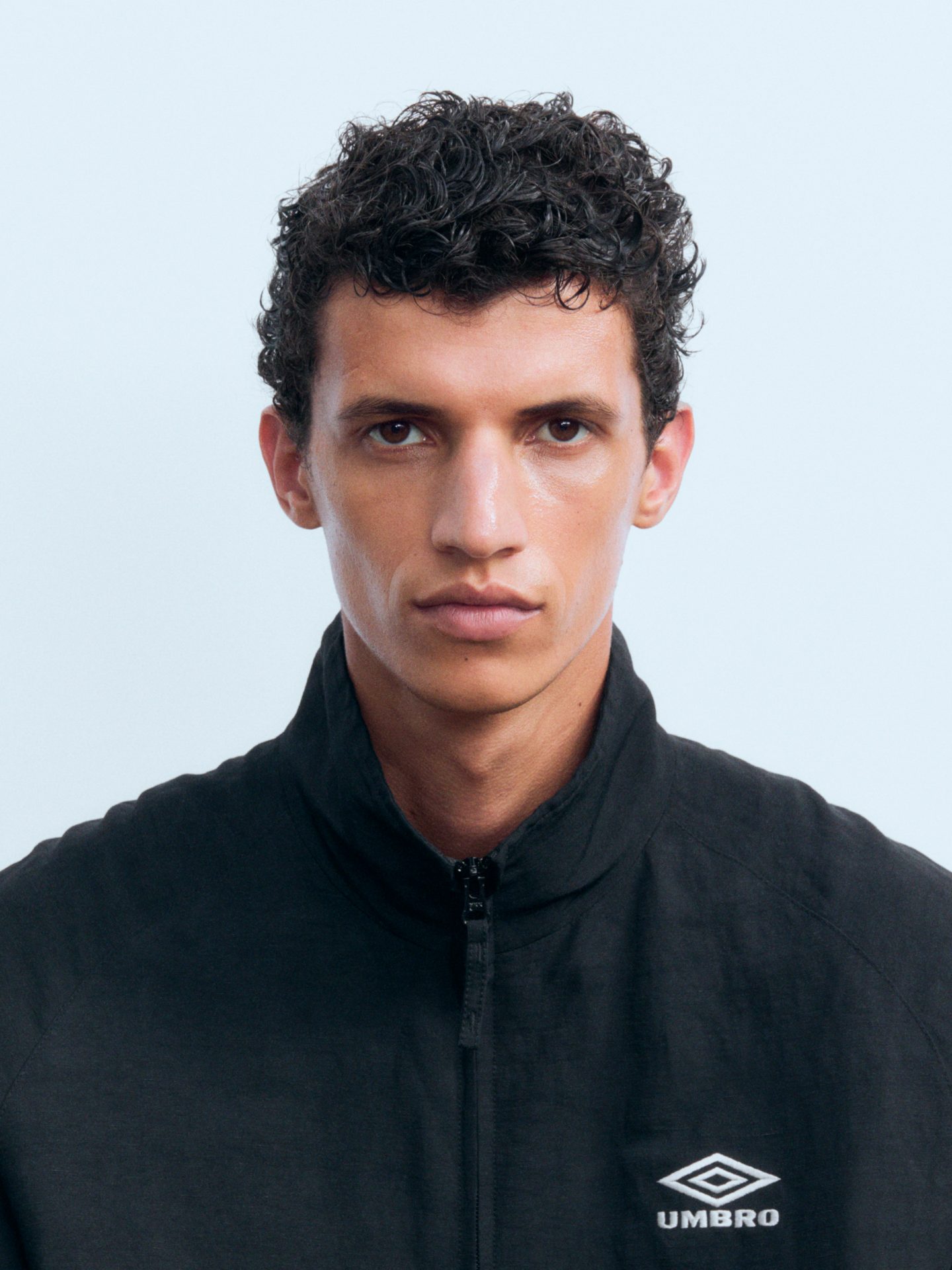 ssstein独自のミニマルなシルエットや素材感に、デザイナーが偏愛する1990年代のUMBROサッカーユニフォームのムードを融合。